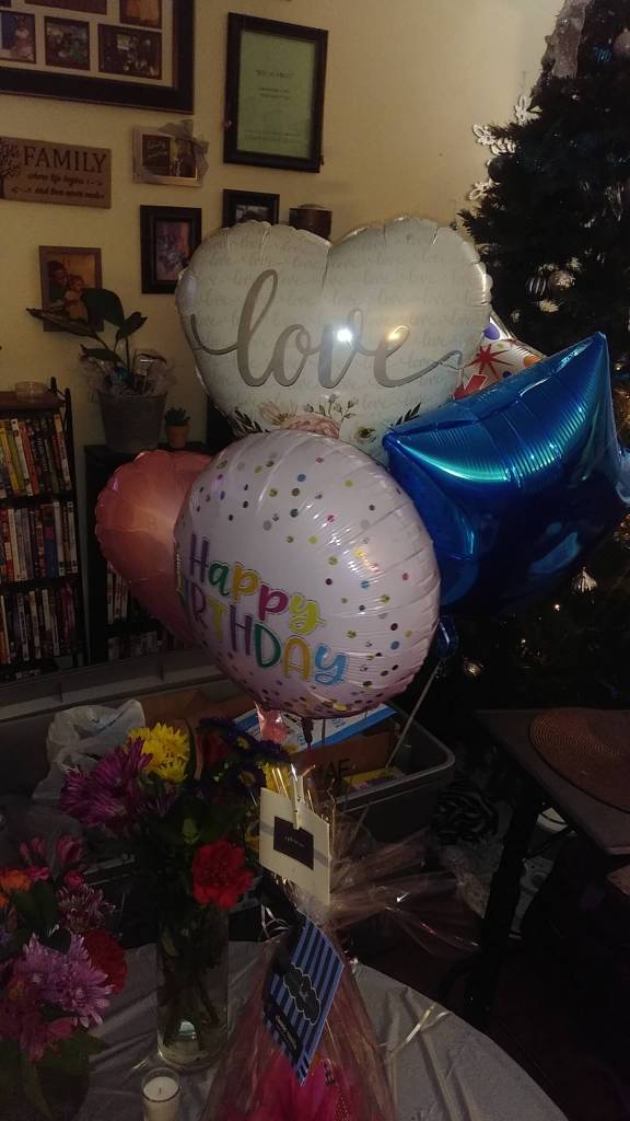 MADE IT 2 MY 50’S!!! BLESSED AND READY!SHAI KNOWS I LOVE GRILLED CHEESE SO WE HAD LOBSTER AND BRISKET GRILLED CHEESE 4 MY BDAY! PRICEY BUT DELICIOUS! THE BOYZ HAD WHATABURGER, LOL!!SHAI ALSO KNOWS MY LOVE 4 COTTON CANDY! SHE BOUGHT ME GOURMET: GREEN APPLE, WATERMELON, AND CHERRY!ZY ZY AND I DOING GOOFY THINGS LIKE MAKING MS. LEGGY, INSPIRES ME!! HER HAIR IS A SWEATER! HER GLASSES…FANGAS!OTHER INSPIRATIONS: BOUQUETS OF FLOWERS, WHICH ARE HARD 2 GET IN THE COUNTRY, BUT NOT IMPOSSIBLE…BALLOONS, AND WHITE LIGHTS! WEED USE 2 BE ON THE LIST, BUT I HAD 2 MOVE ON…MY PATH DOES NOT ALLOW IT!! LOL.INSPIRATIONAL BALLOONS!! THIS BOUQUET WAS ONLY 6 BUCKS! THEY ALMOST LASTED A MONTH!ANY ABSTRACT PAINTING THAT I DO INSPIRES ME. ZY AND D2’S PHOTOGRAPHY AND BEAUTIFUL SUNSETS INSPIRE ME!INSPIRATIONAL AND FUNNY MEMES/GIFS THAT KEEP ME FROM BEHIND BARS AND INSPIRE ME!!IT’S A NO BRAINER THAT THE CREATOR INSPIRES ME!ANYTHING POSITIVE AND/OR ORIGINAL FROM THE CREATOR’S BLUEPRINT INSPIRES ME…INCLUDING THE BLACK/BROWN FAM!! MY DAD’S FAV FLOWER, SUNFLOWERS, INSPIRE ME!DAWN: 1ST APPEARANCE OF LIGHT/ THE BEGINNING OF A PHENOM…INSPIRES ME!!A LOT OF OUR TRUTH IS IN THERE!!HEY WITTLE GIRL! MY DABBER HUBBARD, MY DADDY, AND MY BIG BRO WERE THE 1ST BLACK MEN I LOVED DEEPLY…IT IS BECAUSE OF THEM THAT I REVERE THE BLACK MAN…WHOM INSPIRE ME!!MY ELDERS ARE MY INSPIRATIONAL ANGELS! I LOVE MY DABBER HUBBARD, MAMA JULIA, GRANDAD, AUNTIES LIZABEE, RUBY, HATTIE, UNCLE JOHN L., AND MY UNCLE JAMES…WHO NAMED ME KIMBERLY DAWN!! MY ELDERS ON MY DADDY’S SIDE ARE ALSO IN MY HEART…I LOVE ALL OF THEM, THEY ALL INSPIRE ME!!MY WRITER’S BOUQUETS 4 THE WEEK INSPIRE ME!